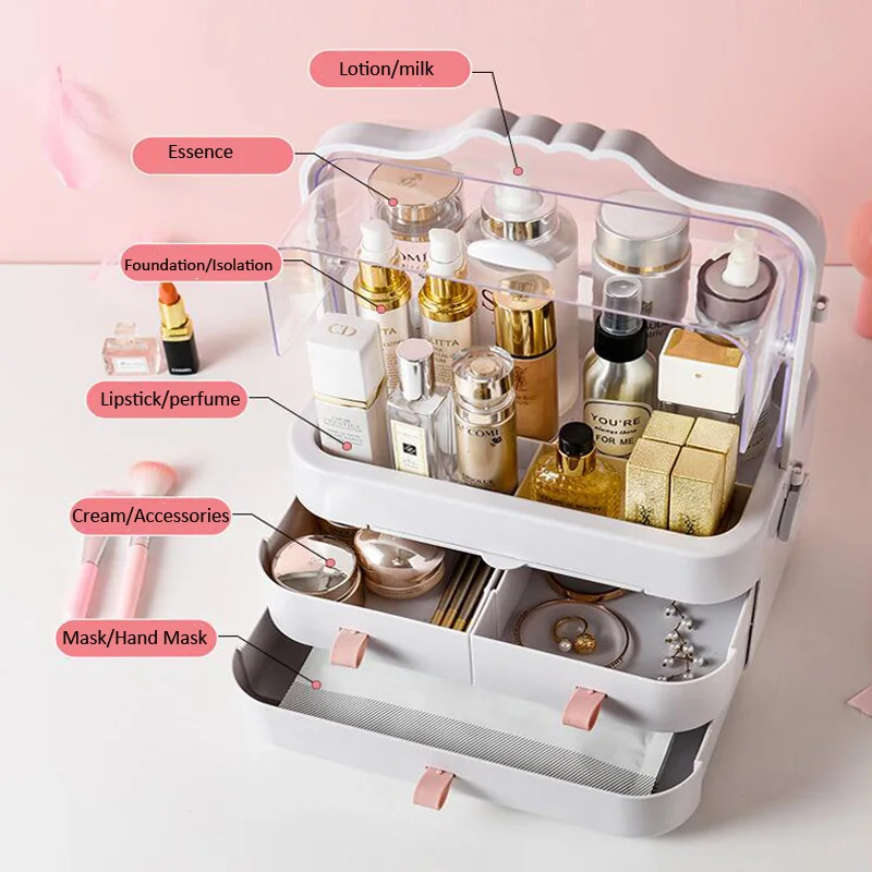 This Cosmetic Organizer Makeup Storage Box with Drawers Transparent and Waterproof is perfect for storing cosmetics. Use it as a makeup organizer bag for travel or keep it at home with its makeup organizer drawers. Find the best makeup organizer box price in Bangladesh with this versatile cosmetics organizer box bag drawer.